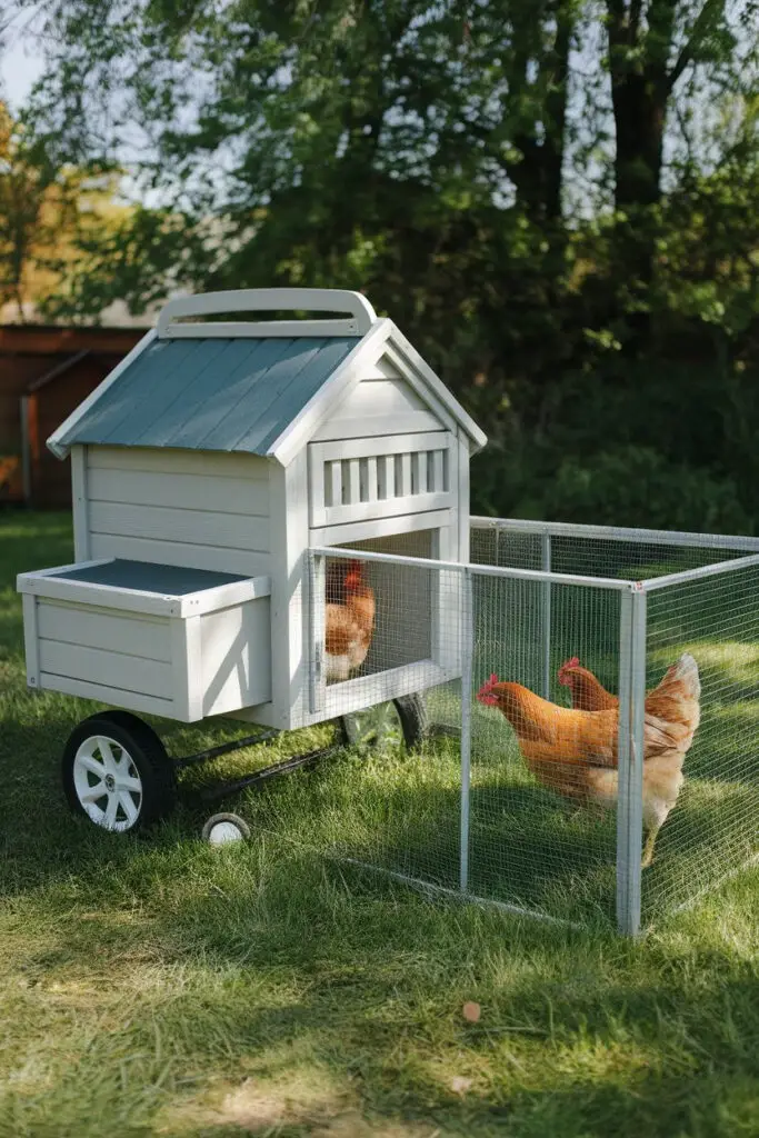 - Why it works: Chickens can graze on different patches of grass each day, helping with pest control and reducing the need to clean one stationary area.