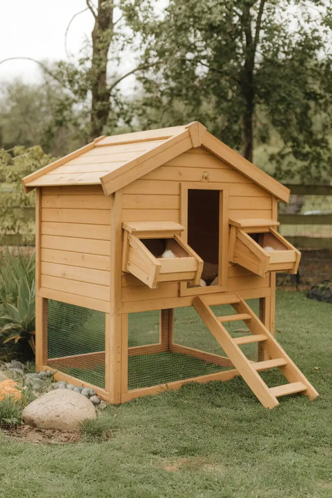 - Drop-down doors or access hatches: Makes it easy to gather eggs and clean the inside without climbing in.