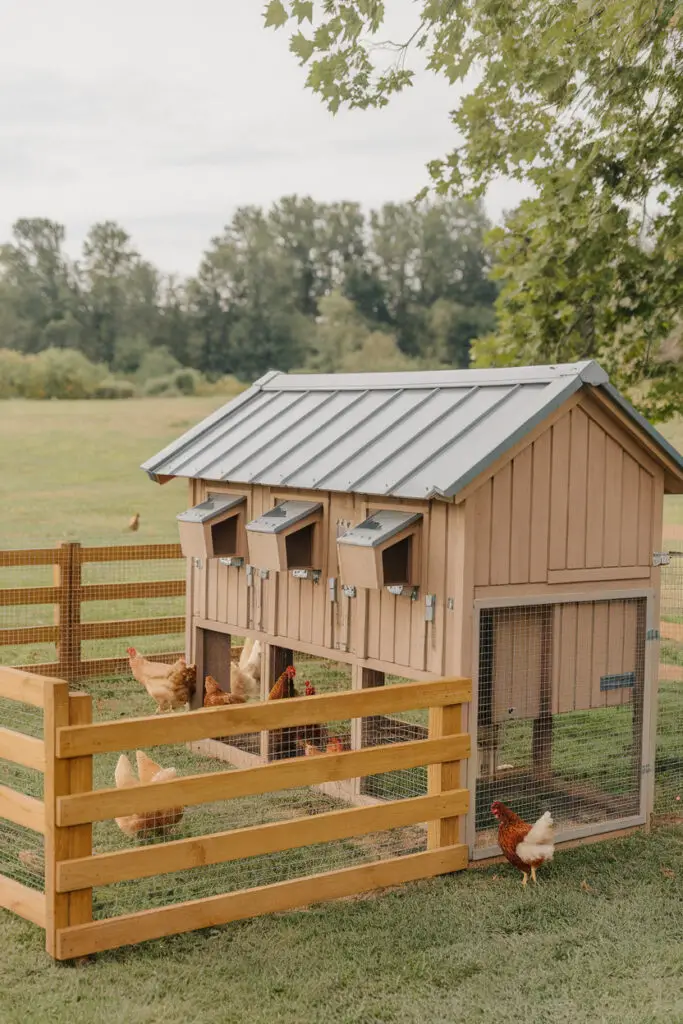 A general rule of thumb is 3–4 square feet per chicken inside the coop. For example, if you have 6 chickens, you’ll need at least 18–24 square feet of space in the coop. If you’re adding an outdoor run, you’ll want 8–10 square feet per chicken outside.