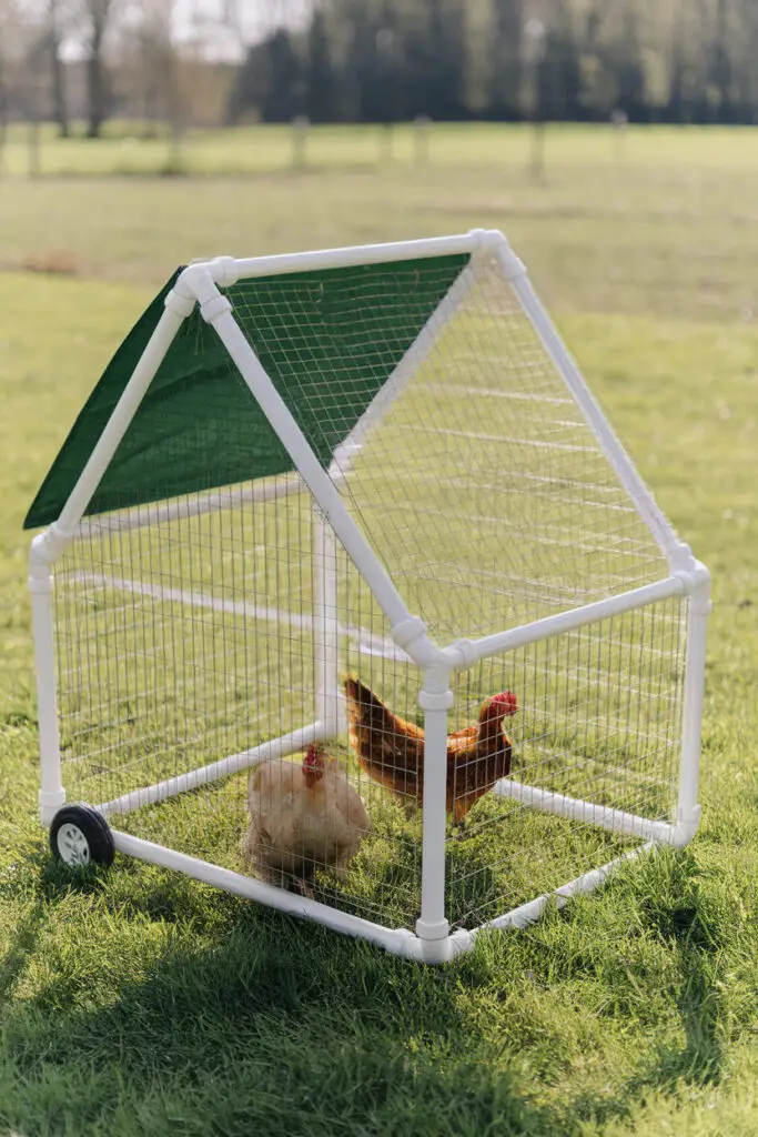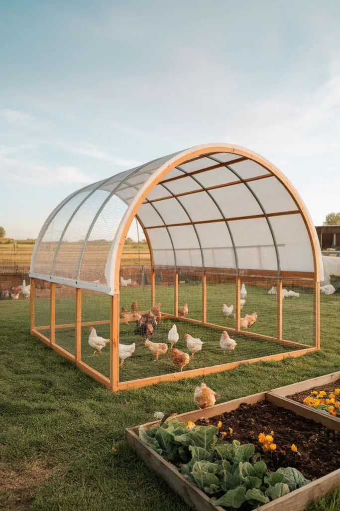 Tip: Install removable shade cloth or vents for summer, and enjoy fresh greens growing inside with your birds.