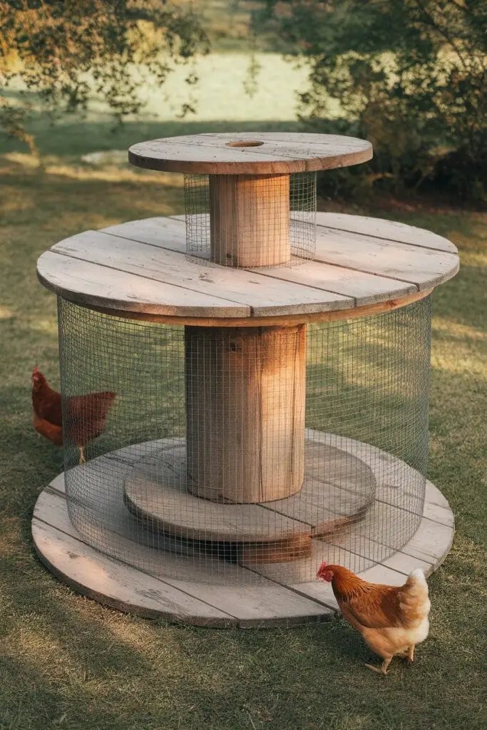 Tip: Use one spool as the base and another as the roof, with mesh sides and a door between. Great conversation piece!