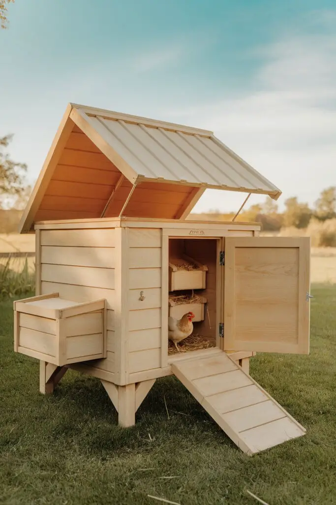16. Swing-Open Roof Coop (Easy Egg Access)