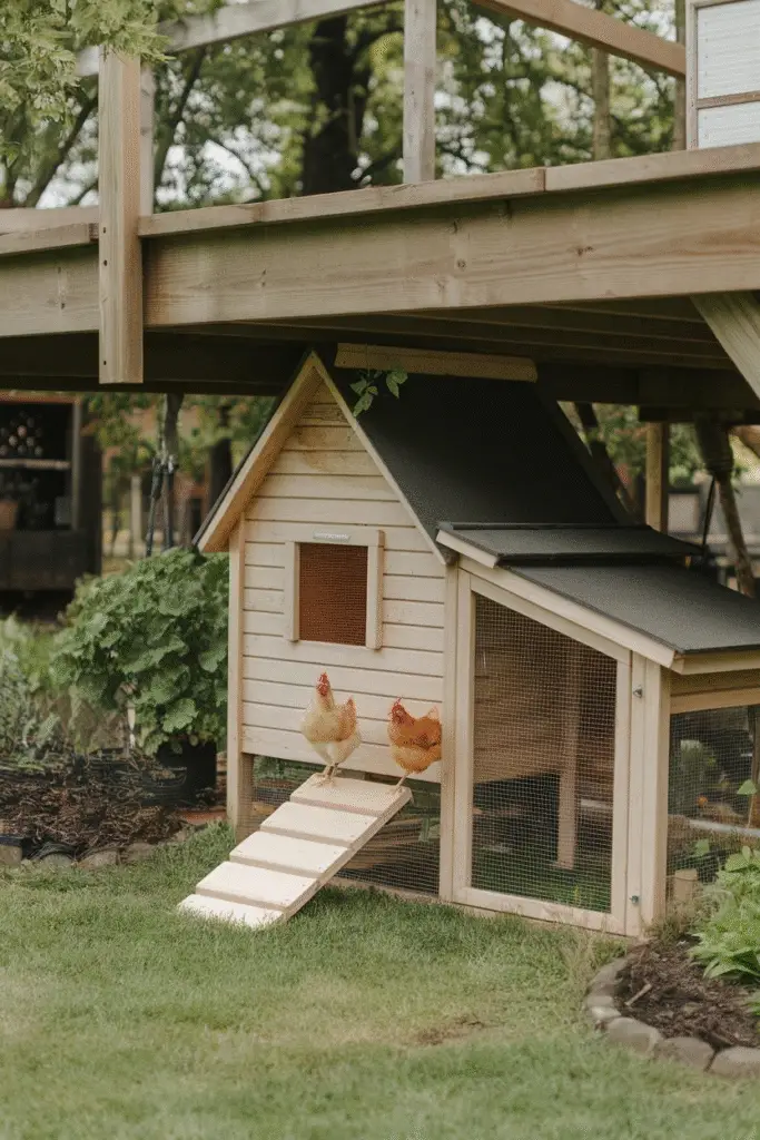 Have a raised deck or porch? Lucky you. That shady, underused space underneath can be turned into a discreet, weather-protected chicken coop. Just enclose it securely, add a ramp, and you’re golden.