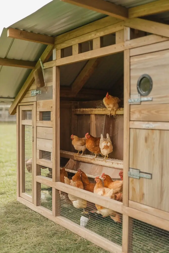 When you’re working with a small area, it’s vital to keep the floor open for your chickens to move around. Use vertical space to your advantage by adding stacked roosting areas or shelves. You can also hang feeders and waterers from the ceiling to free up floor space. And don’t forget that multi-use furniture (like storage boxes that double as perches) can save room while serving multiple functions.