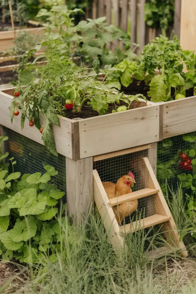This one’s perfect for the multitaskers and garden lovers out there. The idea? Build your chicken coop under your raised garden beds. Your chickens hang out in the shaded lower level while your herbs and veggies grow on top.