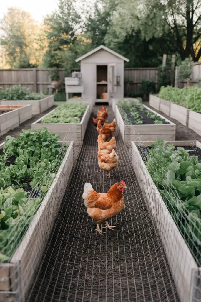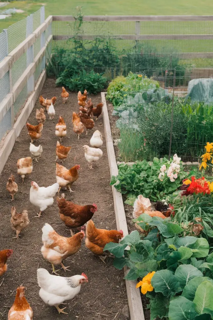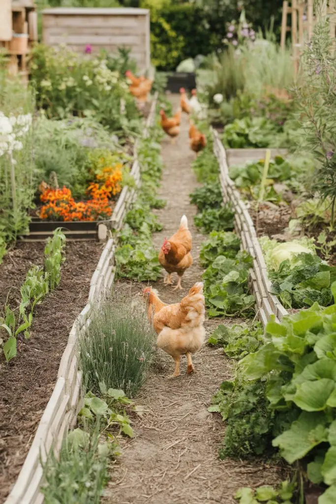 Create a layout that splits your garden into two sections: one for the chickens and one for your crops. Think of it like a chicken penthouse with a lovely garden “no chickens allowed” sign. Fences or barriers keep the two worlds from colliding.