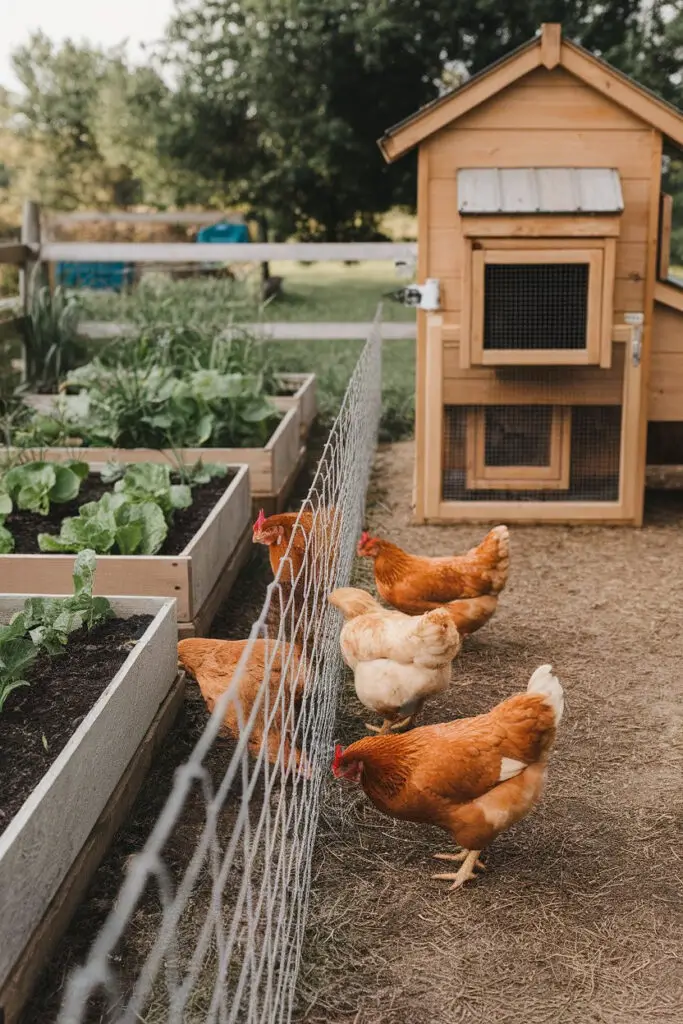 Make sure the fence is chicken-proof. Chickens are surprisingly sneaky, and if there’s a gap big enough to fit a beak, they’re in your garden faster than you can say “fresh eggs.”