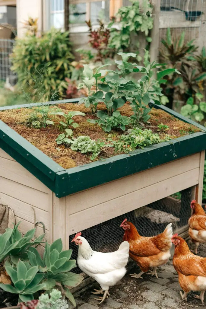 Make sure your coop roof is strong enough to support soil and water weight. Also, provide good drainage.