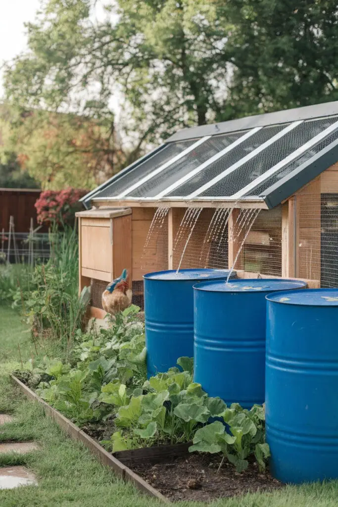 Why pay for water when nature’s giving it away for free? Set up a rainwater harvesting system that collects rain from your chicken coop roof and funnels it into barrels or tanks. This free liquid gold can be used to water your plants, hydrate your chickens, or even give your coop a good ol’ cleaning.